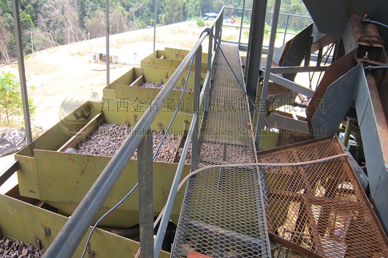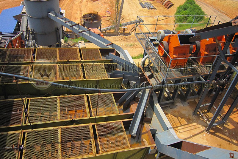 猛礦重選案例:設(shè)備有鄂破-圓筒洗礦機(jī)-直線振動篩-槽式洗礦機(jī)-跳汰機(jī)-螺旋洗沙機(jī)